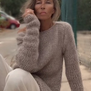 Handknit Alpaca Sweater: Beige Oversized Pullover, Long Sleeves