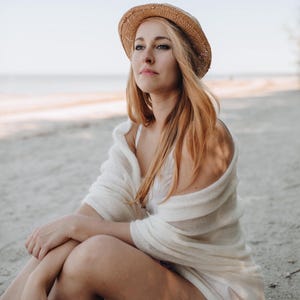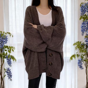 Handmade Wool and Mohair Cardigan – Chunky Knit Striped Sweater, Oversized Cozy Jacket, Red and Beige Knitwear for Women
